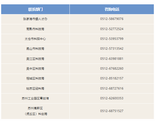 市科技局科技人才处:0512-65119071。