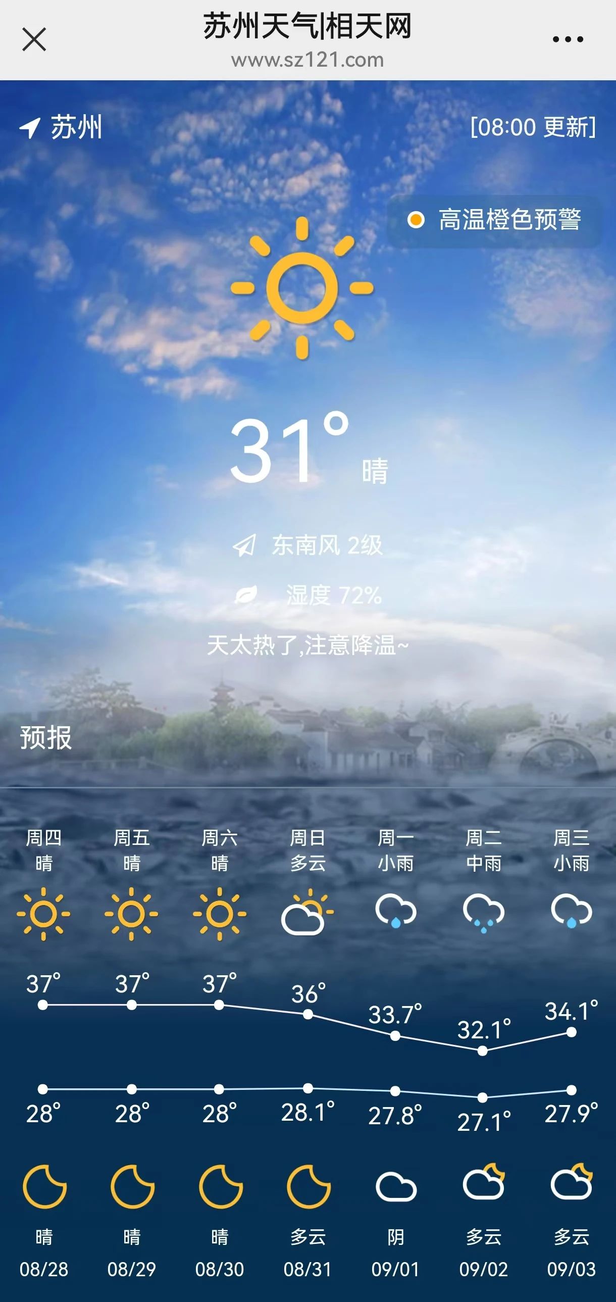 虽然距离全省降温只剩4天,但苏州、无锡、常州以及南通的小伙伴,这几天务必注意防暑降温。