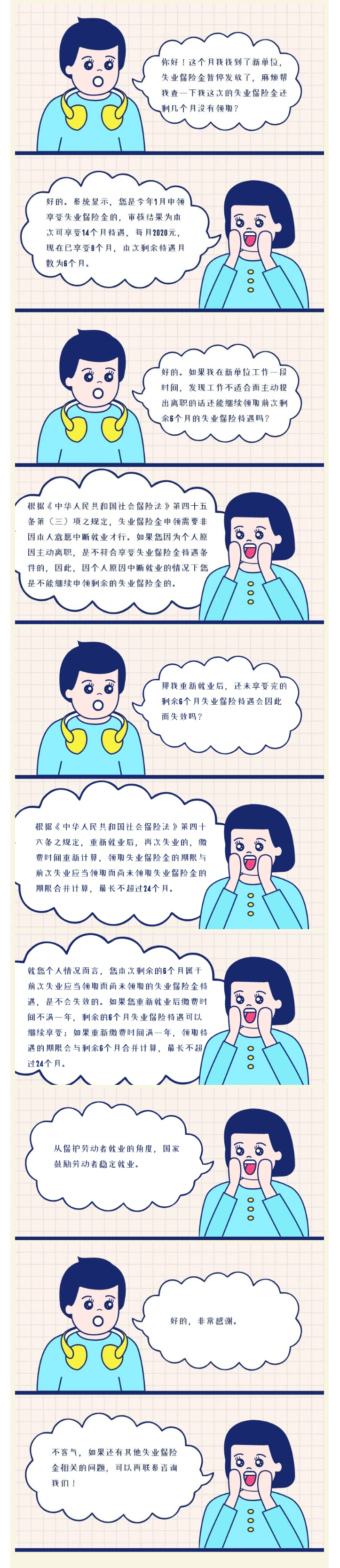郑先生今年1月申请享受了失业保险金,可享受14个月。今年8月,郑先生找到了新单位,失业保险金暂停发放了,想了解剩余没有领取的失业保险金是否可以在下次失业的时候继续领取?