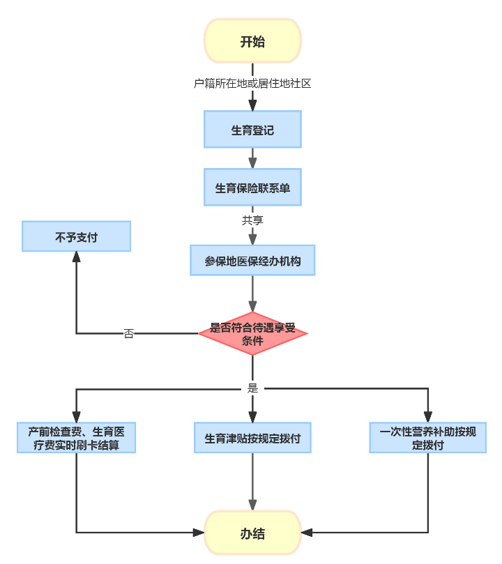 符合生育医疗费待遇享受条件的参保女职工,已在社区进行生育登记,即可在生育定点医疗机构凭本人社会保障卡或医保电子凭证直接结算生育医疗费。职工只需支付生育结付规定以外需个人承担的费用。发生符合结付规定的医疗费用,由职工医疗保险统筹基金全额结付。