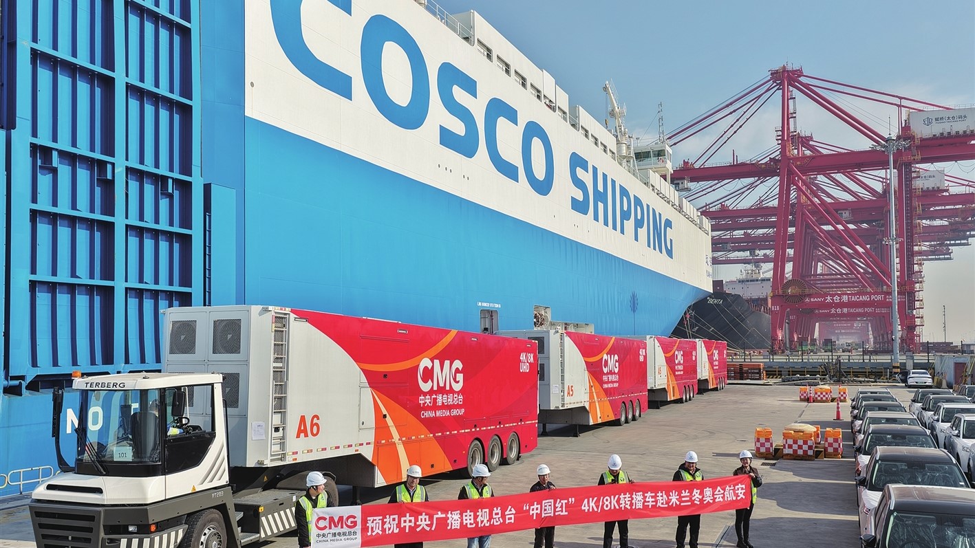 昨天(11月30日),中央广播电视总台一批“中国红”4K/8K超高清转播车在苏州港太仓港区海通汽车码头装船启运,将远赴意大利米兰和科尔蒂纳丹佩佐,服务于2026年冬季奥运会的赛事转播报道。
